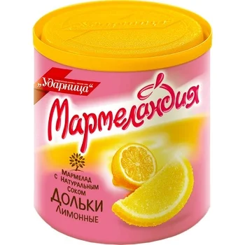 Мармелад «Мармеландия» лимонные дольки 250 г — это яркое, красивое и очень вкусное лакомство, которое любят и взрослые, и дети. Лимонные нотки и нежный аромат цитруса в оригинальном исполнении в форме фруктовой дольки вызывает непреодолимое желание насладиться замечательным мармеладом.