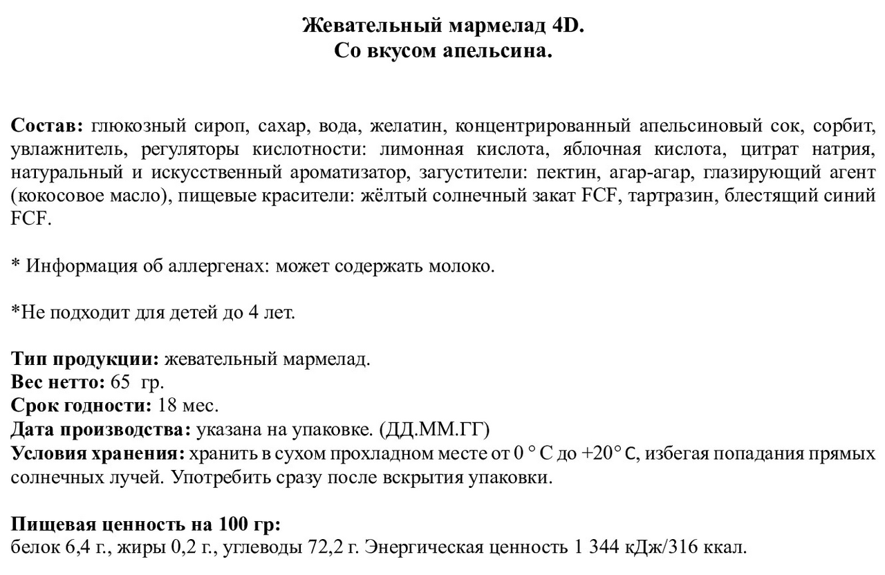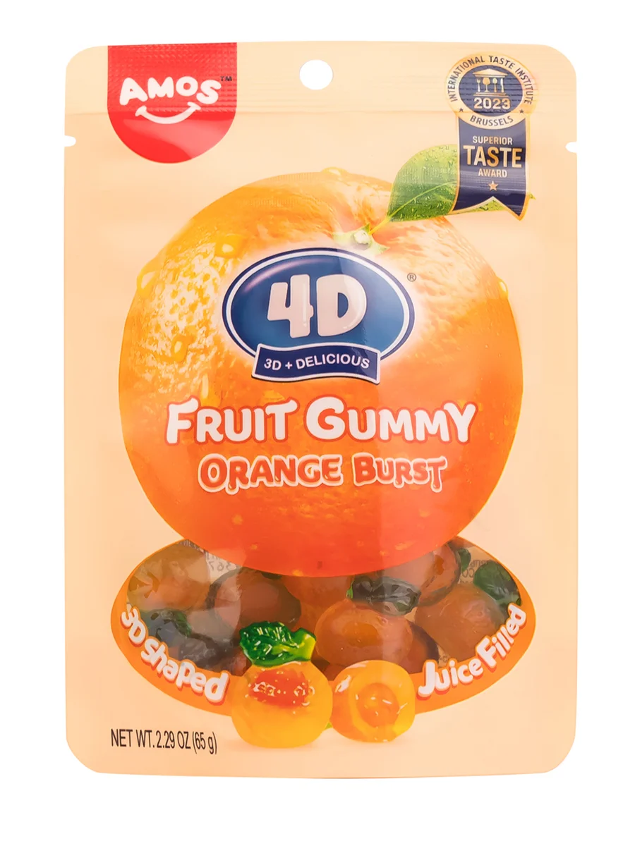 Мармелад жевательный Amos 4D апельсиновый, 65г