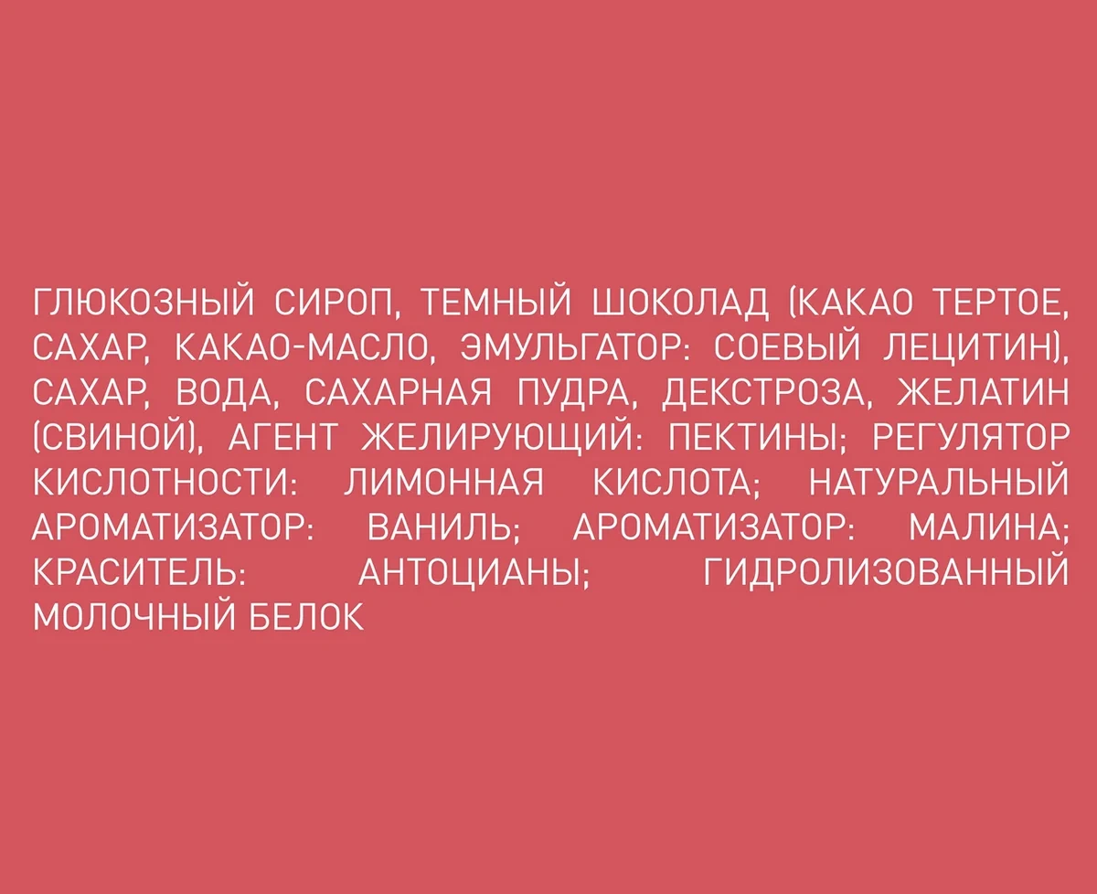 Глюкозный сироп, белый сахар, вода, высококонцентрированные молочнокислые бактерии, сухое обезжиренное молоко, молочнокислые бактерии (Lactobacillus rhamnosus, Lactobacillus fermentum, Lactobacillus paraphyleticus, швейцарские лактобактерии, Streptococcus thermophilus, Lactobacillus helveticus, Lactobacillus paracasei, Lactobacillus lactis), молочная кислота, цитрат натрия, пектин, пищевой ароматизатор, желатин, сорбит, лимонная кислота, DL-яблочная кислота, составное покрывающее средство (октил, глицерилкапрат, бразильский коричневый воск), витамин С, фруктовые концентраты (яблочный сок, сок фиолетовой моркови), вода, лимонная кислота.