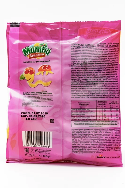 Мармелад Mamba Фрукты и йогурт жевательный, 140г представляет собой сочное угощение, которое может прийтись по душе как взрослым, так и детям. Сладость содержит большое количество витаминов, которые оказывают положительное воздействие на организм человека. Она помогает поднять настроение на весь день и дарит заряд энергии, сил. Благодаря высокой калорийности конфеты быстро утоляют чувство голода. Лакомство не содержит вредных добавок. Оно отличается интересным, насыщенным вкусом и приятным ароматом, который никого не оставит равнодушным. Мармелад можно употреблять в игровой форме. Выпускается в компактной упаковке с интересным дизайном, которую удобно брать с собой, чтобы полакомиться сладостью на работе, учебе или в дороге. Рекомендуется хранить в сухом, прохладном месте, вдали от источников тепла.