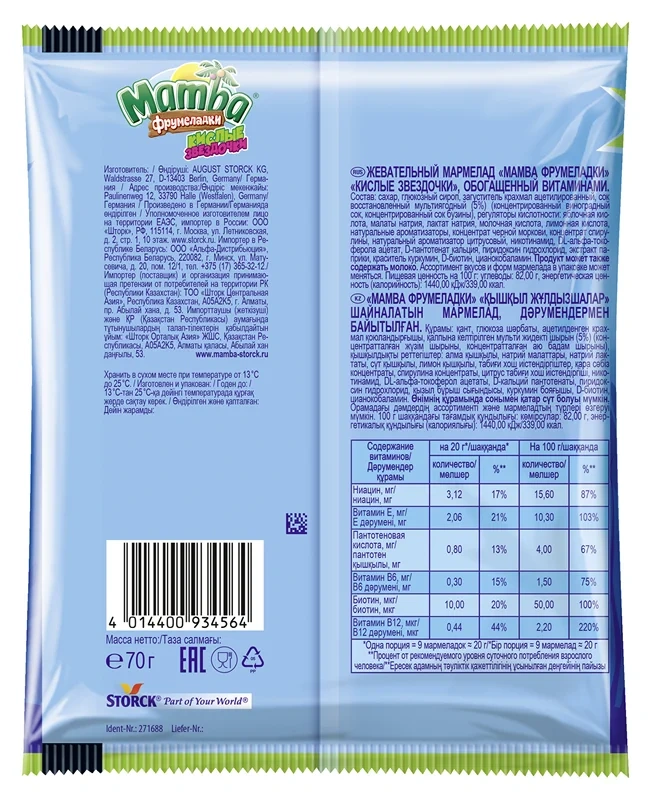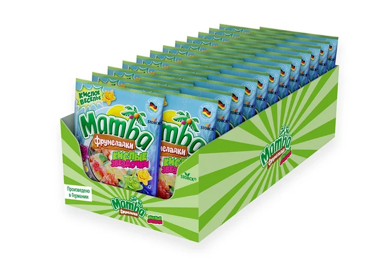 Mamba Фрумеладки - вкусные жевательные мармеладки c натуральным фруктовым соком и витаминами. Насладись их отличным вкусом и получи заряд веселья. Это легкий и вкусный лакомство, которое понравится как детям, так и взрослым. Фрумеладки Mamba обладают нежной и мягкой текстурой, которая плавно распадается во рту, даря неповторимое ощущение при каждом кусочке. Они идеально сочетают в себе сладость и кислоту, создавая вкусный и уникальный вкусовой букет.