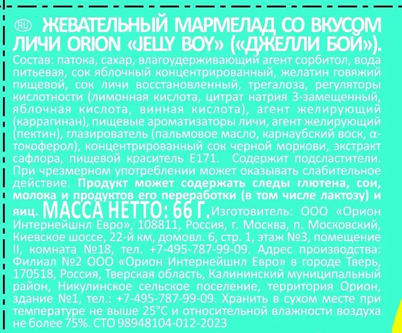 Мармелад жевательный Orion Jelly Boy Личи, 66г