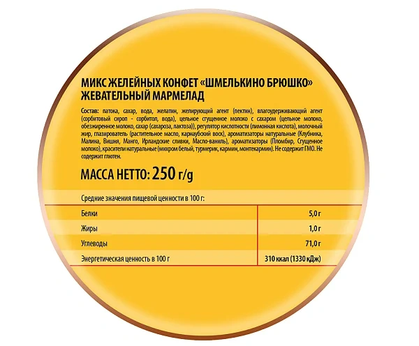 Мармелад жевательный Победа вкуса Шмелькино брюшко 4 вида, 250г
