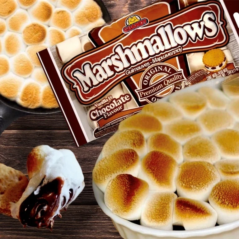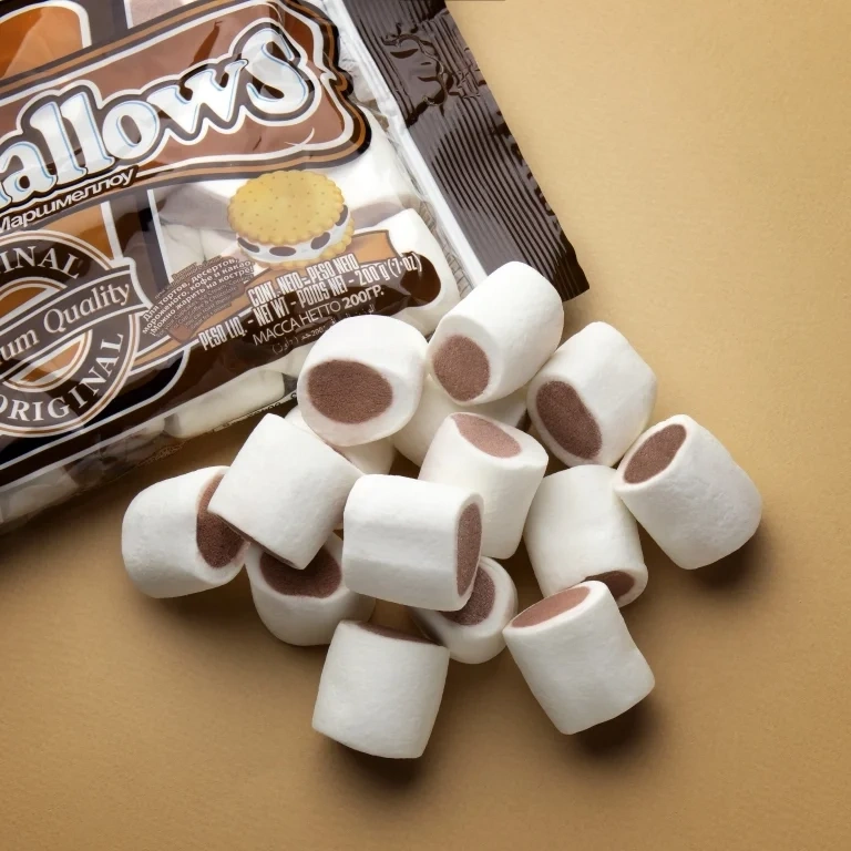 Маршмеллоу Guandy (Гуанди) шоколадно-ванильный 200г. Без жира. Без глютена. Без лактозы. Без яичного белка. Маршмеллоу Guandy — сложный и уникальный продукт, имеющий особую закрытую технологию производства, которая включает в себя рецептуру и опыт в данной отрасли на протяжении более 35 лет. Не каждый производитель маршмеллоу способен повторить особую температурную формулу, а ведь именно она позволяет нам использовать маршмеллоу множеством разных интересных и вкусных способов, а также придает ему идеальную упругость и нежный ванильный вкус. Кроме того, наш маршмеллоу не содержит жир, глютен, лактозу и яичный белок.