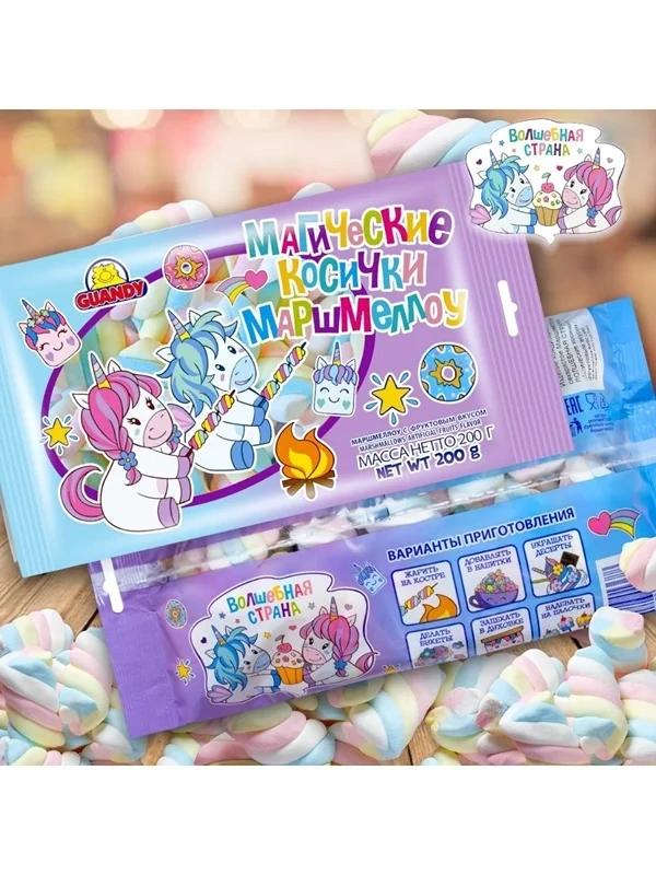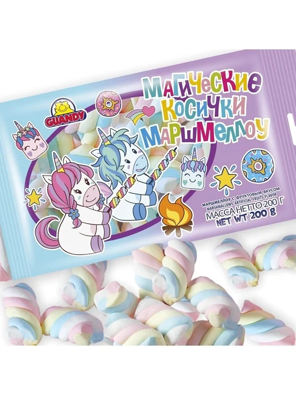 Маршмеллоу Guandy Волшебная страна магические косички фруктовые, 200г