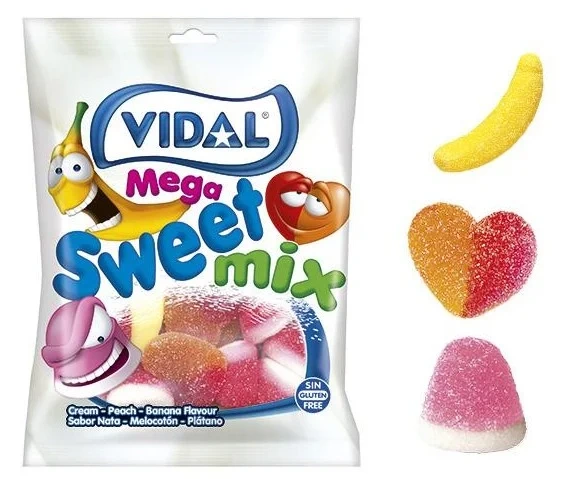Мальтозный сироп, сахарный песок, желатин, обработанный кислотой крахмал, загуститель (дикрахмалфосфат оксипропилированный), пищевая глюкоза, ацетатный крахмал, мальц-экстракт (вода, ячмень, солод), подсластитель (раствор сорбитола), регулятор кислотности (цитрат натрия), концентрированный яблочный сок, бектич, регуляторы кислотности (лимонная кислота, яблочная кислота), пищевой кукурузный крахмал, пищевая ароматизирующая эссенция; красители (красный очаровательный, синий блестящий FCF).