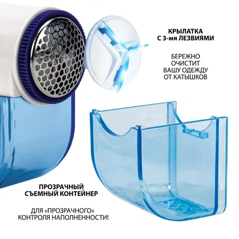 Машинка для удаления катышков миниклинер SONNEN FS-8808, белый/синий, 455464