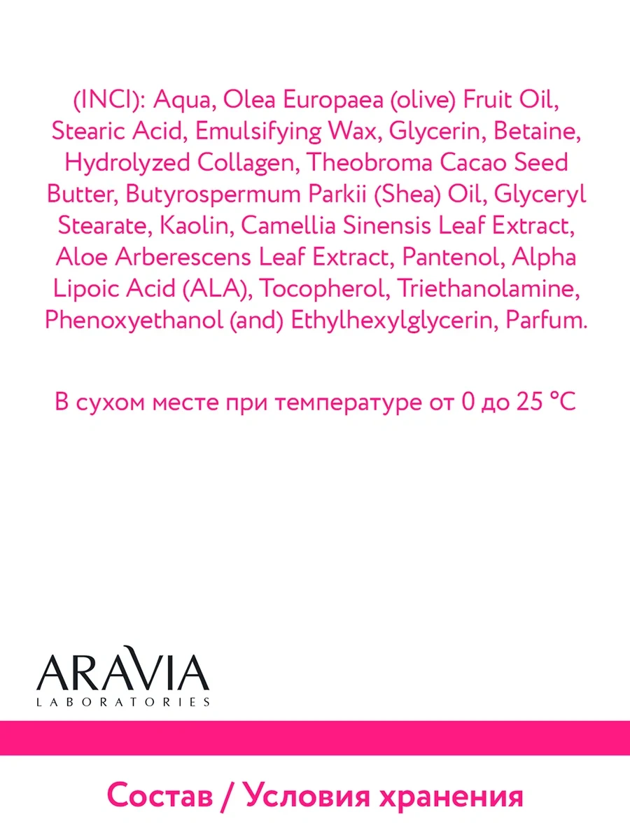 | Масла и экстракты | масло какао; масло ши (карите); оливковое масло; экстракт алоэ; экстракт зеленого чая |