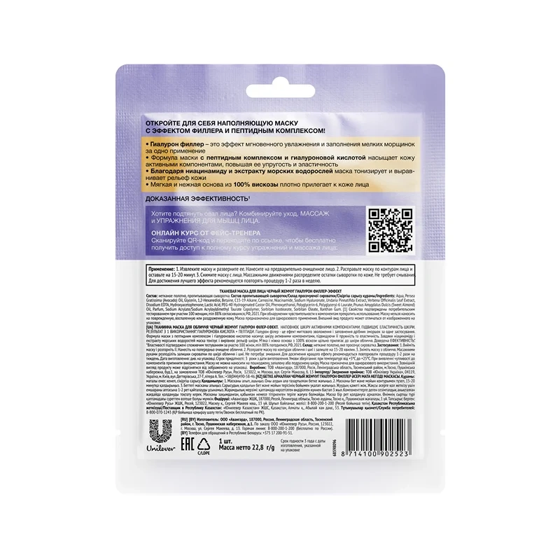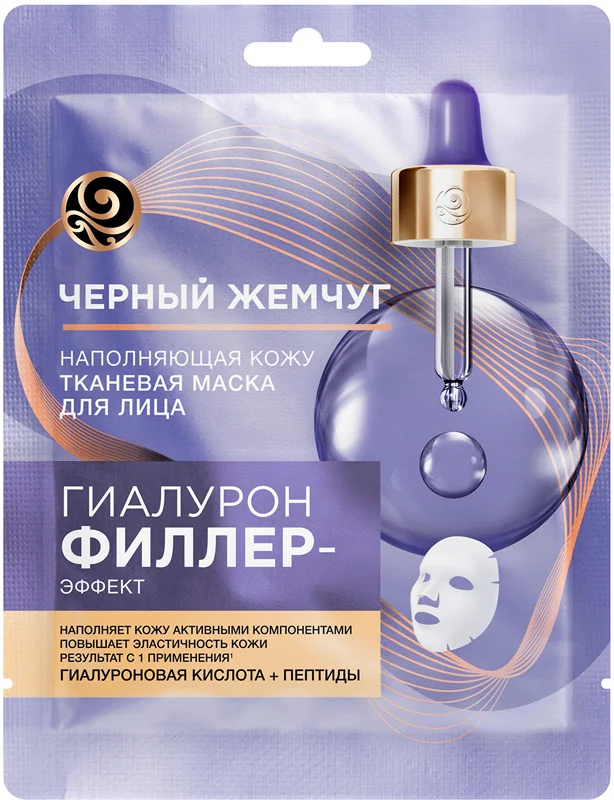 Маска для лица Черный Жемчуг Гиалурон филлер-эффект тканевая