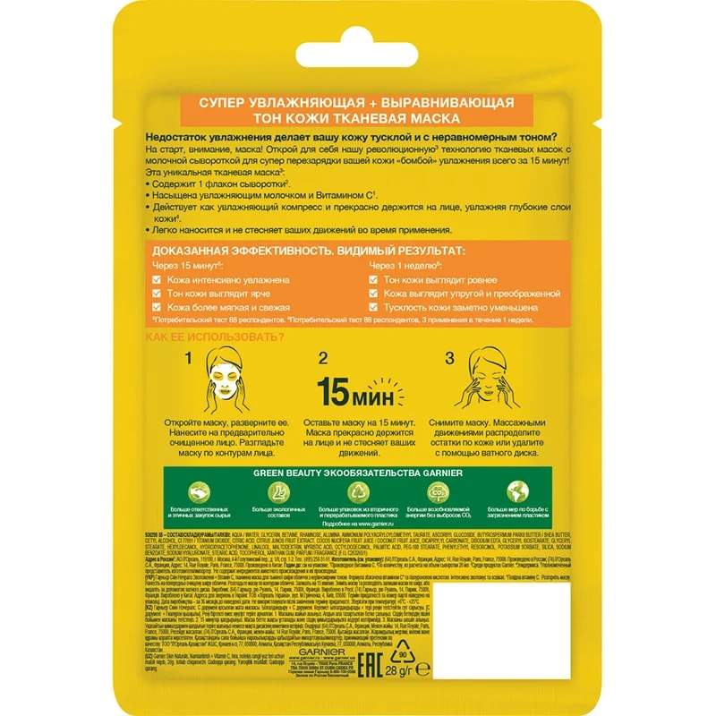 Маска для лица тканевая Garnier Skin Naturals Увлажнение+Витамин С, 28г
