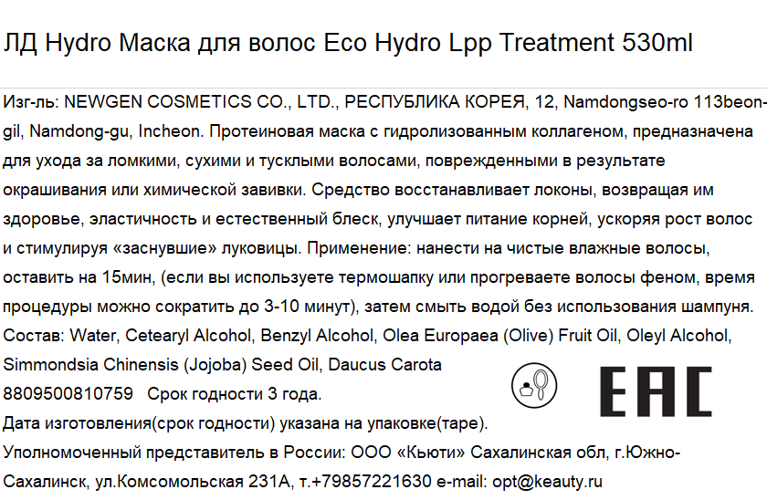 | Эффект | восстановление; придание блеска; придание эластичности |