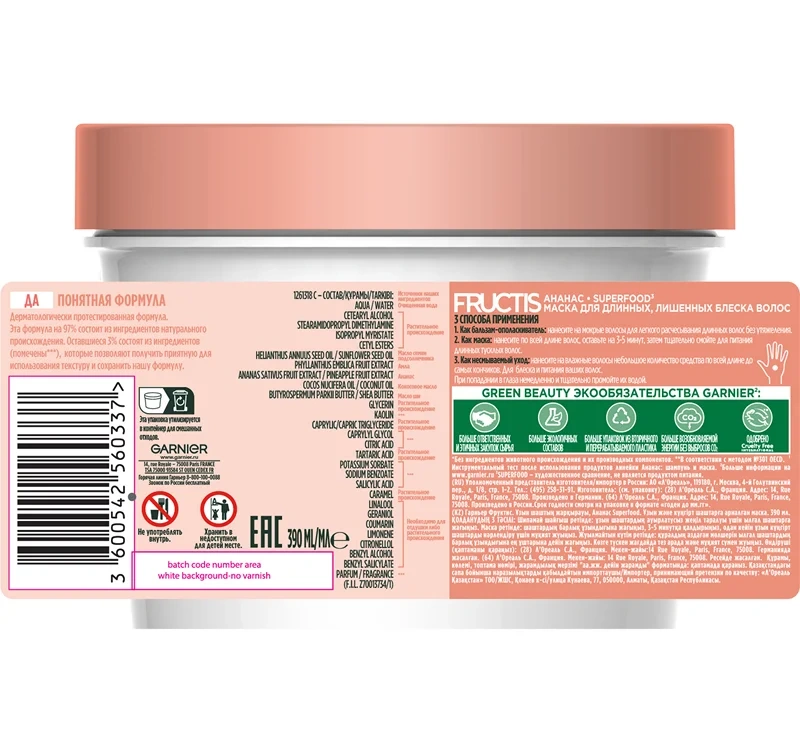 | Не содержит | искусственные красители; силиконы; продукты животного происхождения; парабены |
