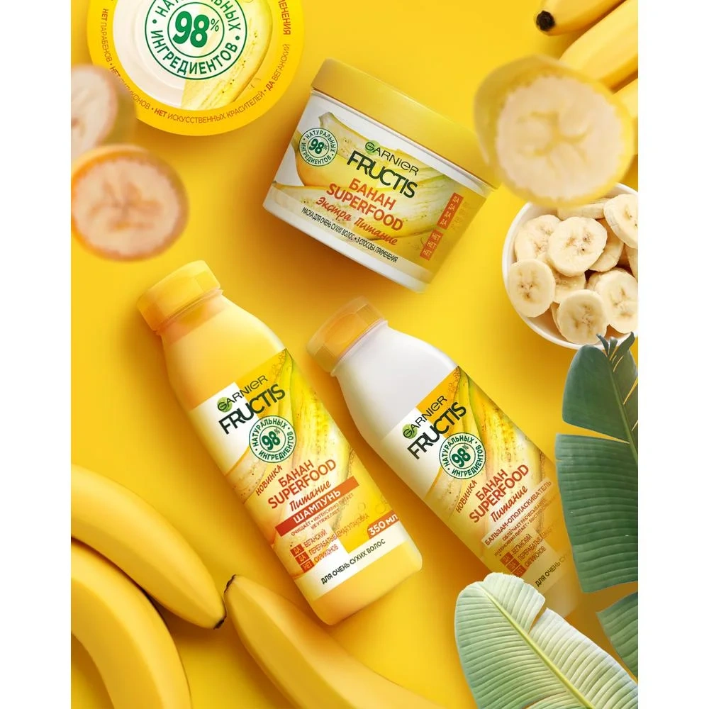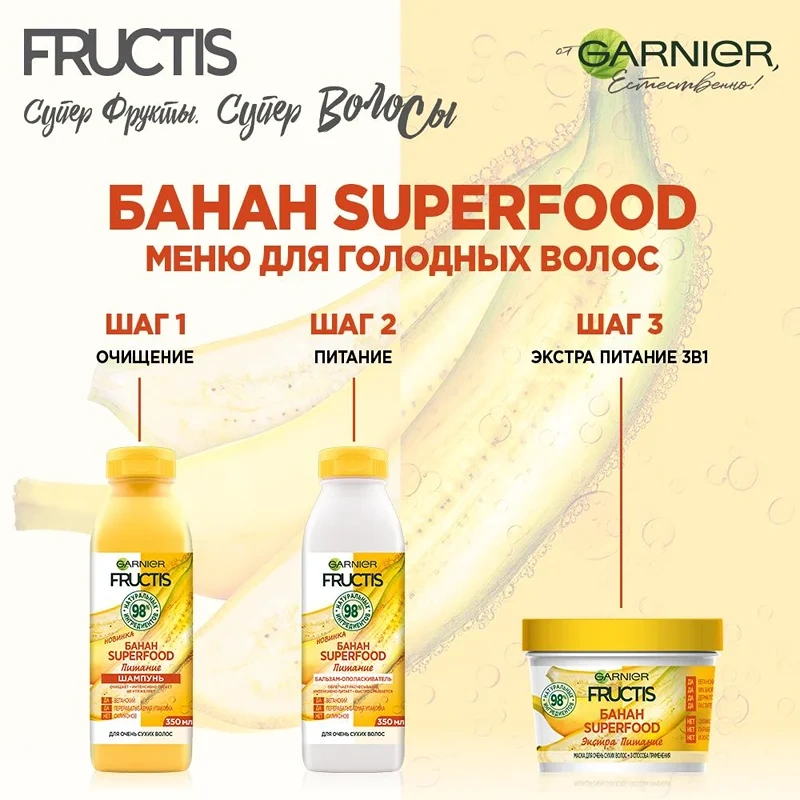 Маска для волос Garnier Fructis Superfood Банан 3в1 питательная для очень сухих волос, 390мл