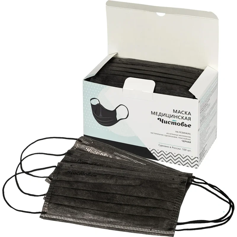 Маска медицинская Чистовье трехслойная черная (100 штук в упаковке)