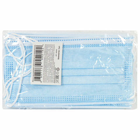 Маска защитная Фастфэшн 3-слойная голубая, 5шт, пакет, SMS, М20410