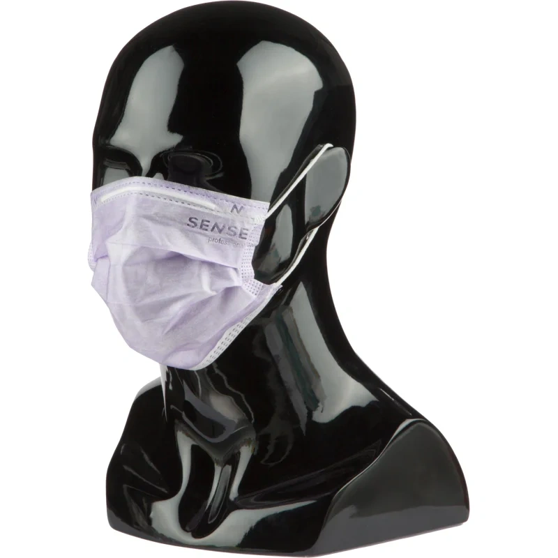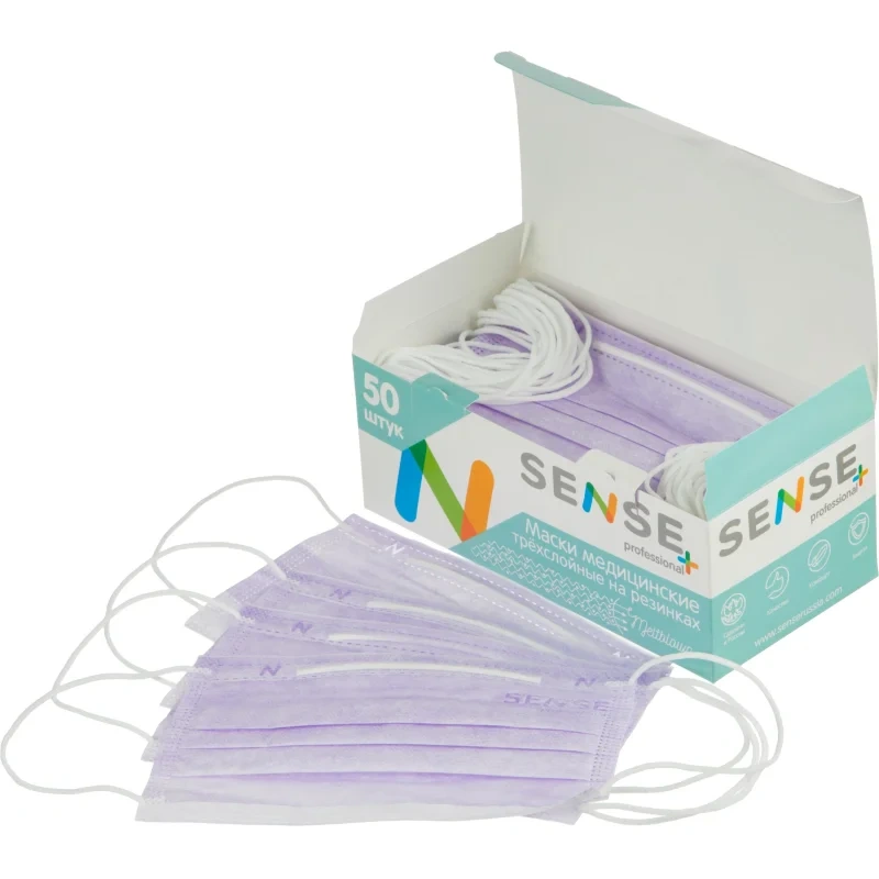 Маска медицинская одноразовая Sense трёхслойная лиловая (50 штук в упаковке)