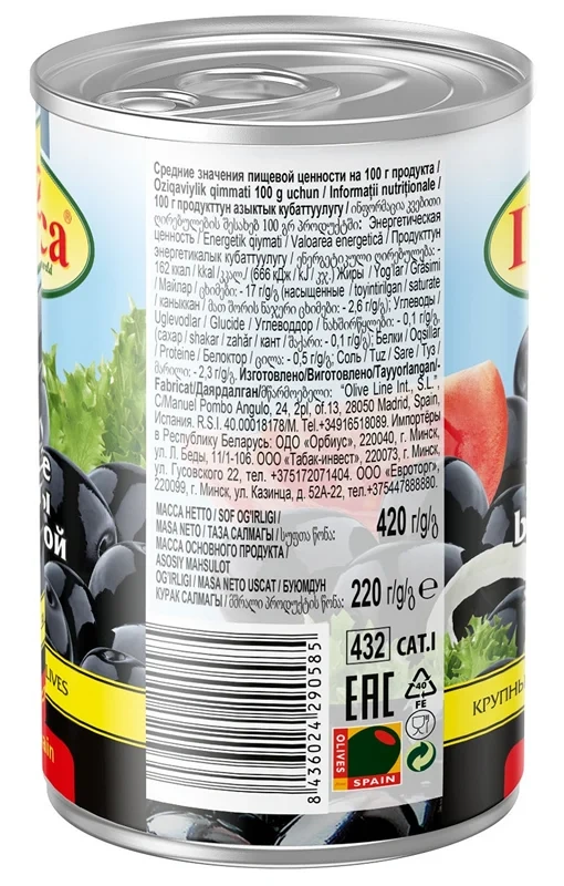 Маслины Iberica с косточкой крупные, прекрасно подойдут для приготовления салатов, пицц и различных вторых блюд. Крупные цельные плоды имеют упругую структуру и отлично держат свою форму. Оригинальный в меру соленый вкус придаст любому блюду пикантность. В приготовлении используются натуральные отборные компоненты, что в сочетании с традиционной рецептурой обеспечивает высокое качество продукта.