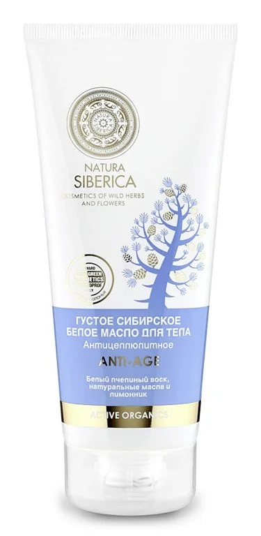 Густое масло для тела Natura Siberica сибирское белое, 200мл увлажняет кожу, разглаживает ее, делая более мягкой и постепенно убирая признаки так называемой апельсиновой корки. Оно повышает эластичность эпидермиса и борется с проявлениями целлюлита еще на ранней стадии. Средство создано на основе масел растений Сибири и пчелиного воска, богатых микроэлементами. В состав продукта входят масла кедра и можжевельника, которые улучшают кровоснабжение кожи и нейтрализуют отечность. Масла облепихи и семян морошки ускоряют процесс обновления эпидермиса, а шалфея и шиповника — тонизируют его.