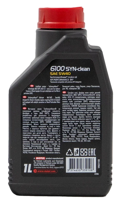 Масло моторное Motul 6100 Syn-Clean 5W40, 1л