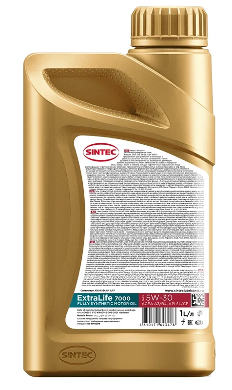 Масло моторное Sintec Extralife 7000 A3/B4 SL/CF 5W-30, 1л