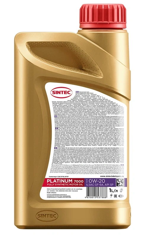 Масло моторное Sintec Platinum Sae 0W-20 Api SP синтетическое, 1л