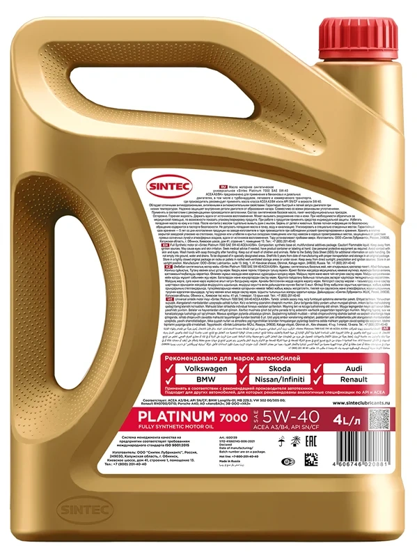 Производится из синтетических базовых масел и высокоэффективного многофункционального импортного пакета присадок от мирового лидера отрасли. Синтетические базовые масла обеспечивают отличные низкотемпературные и термоокислительные свойства, что обеспечивает лёгкий пуск в самых суровых погодных условиях и увеличенный интервал замены масла, даже при высоких нагрузках на ДВС. Противоизносные и моюще-диспергирующие присадки последнего поколения гарантируют непревзойдённую защиту и чистоту двигателя на весь срок службы масла.