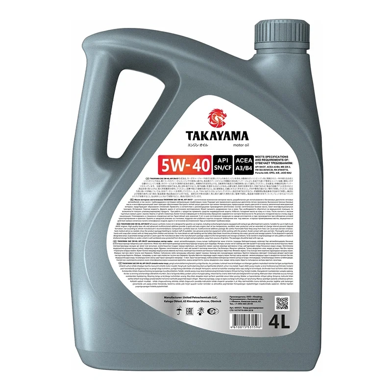 Масло моторное Takayama Sae 5W-40 синтетическое, 4л