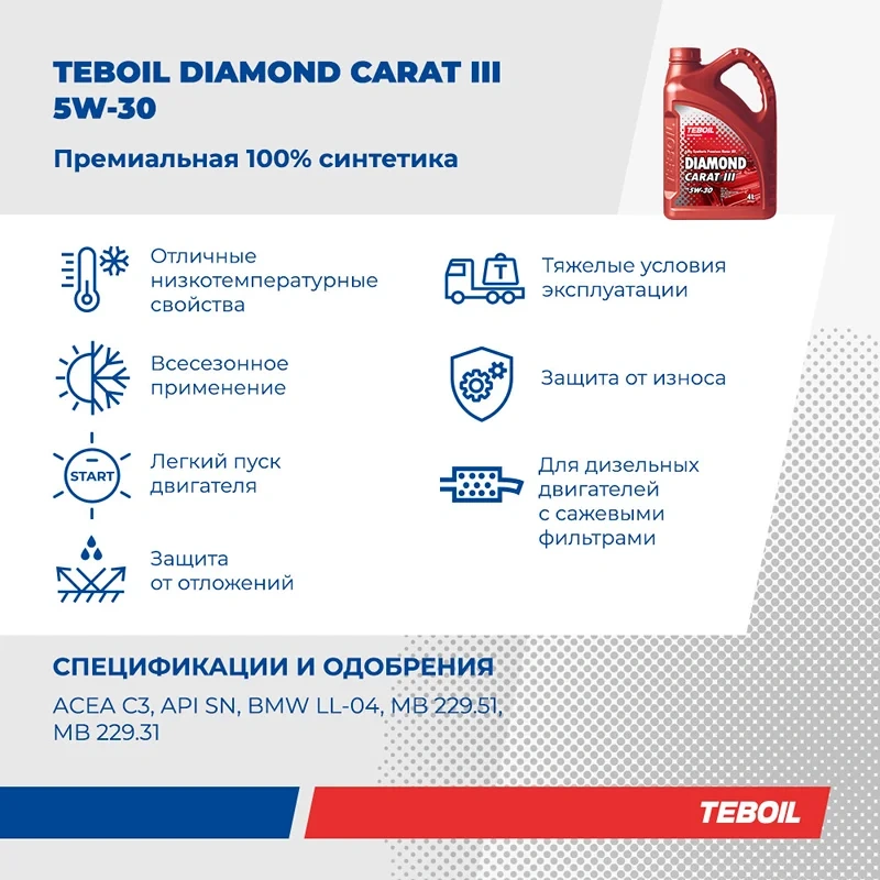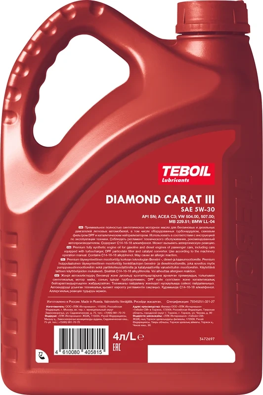 Масло моторное Teboil Diamond Carat III 5W-30, 4л
