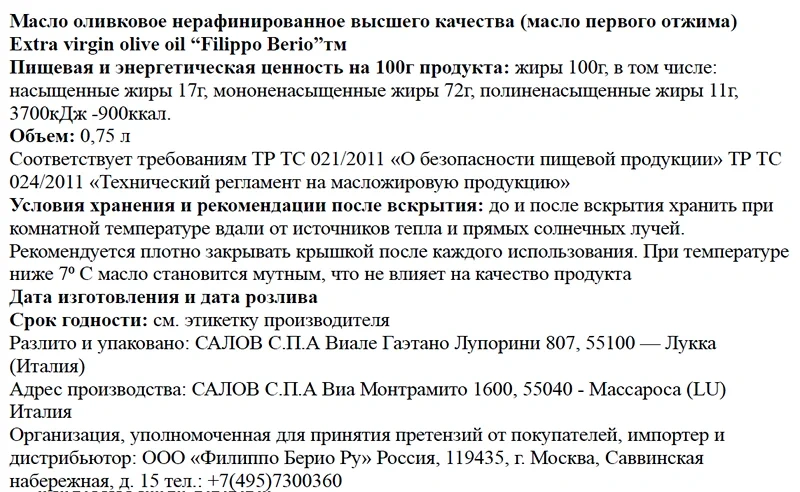 | Особенности состава | без ароматизаторов; без гмо; без консервантов |