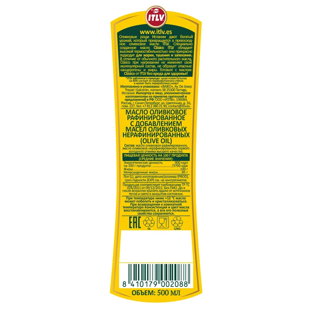 Масло оливковое ITLV Classico рафинированное с добавлением нерафинированного, 500мл