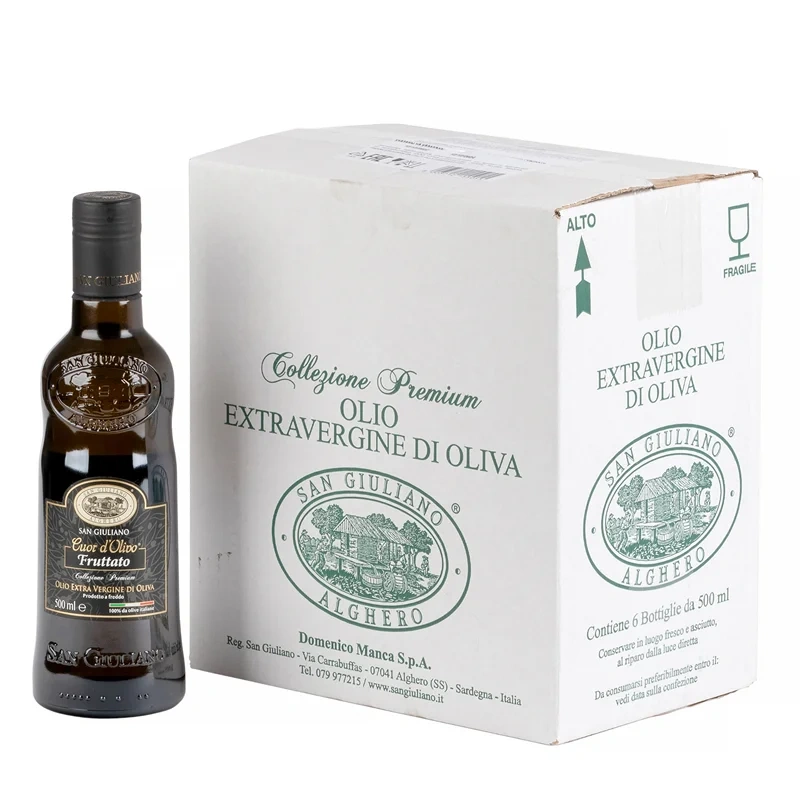 Изысканное оливковое масло для самых требовательных гурманов, несколько раз было отмечено премиями среди лучших масел Италии и мира. Ранний сбор оливок наделяет это масло изысканным золотисто-желтым цветом и ярко-выраженными плодовыми нотами во вкусе. Оно богато полифенолами и имеет насыщенный вкус с нотами артишока, свежескошенной травы, длительное пикантное послевкусие с приятной горчинкой. Рекомендуется как заправка к овощным салатам и салатам с морепродуктами, овощам на пару, овощным супам, жареному красному мясу. Изготовлено из оливок Бозана, Франтойо, Коратина. San Giuliano - это историческое сельскохозяйственное предприятие по сбору и переработке оливок в Альгеро, Сардиния, с низким уровнем воздействия на окружающую среду и всемирно известным качеством. Оливковое масло San Giuliano неоднократно признано одним из лучших масел в мире, изготавливается из плодов, собранных вручную на 250 гектарах оливковых рощ близ Альгеро. Оливковое масло холодного отжима, созданное по традиционному рецепту из оливок сорта Босана и Коратина. Его производство основано на использовании комнатных температур, естественной декантации и легкой фильтрации, что делает продукт одним из лучших на территории Италии.