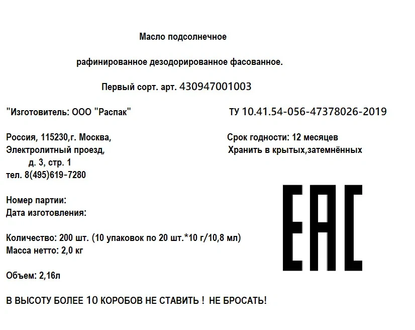 | Стандарт производства | ту 10.41.54-056-47378026-2019 |