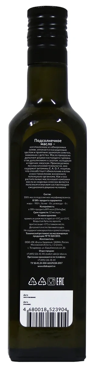 Подсолнечное масло из жареной семечки отличается насыщенным цветом и приятным ароматом. Масло прекрасно дополнит рацион настоящего гурмана, став дополнением к салатам, холодным и горячим закускам. Произведенное по классической технологии, оно содержит витамины E, A, D, F, лецитин, что способствует обновлению клеток и восстановлению жизненного потенциала организма. Как и все растительные масла нашей компании, масло из жареных семечек является полезным и вкусным составляющим ежедневного рациона человека.