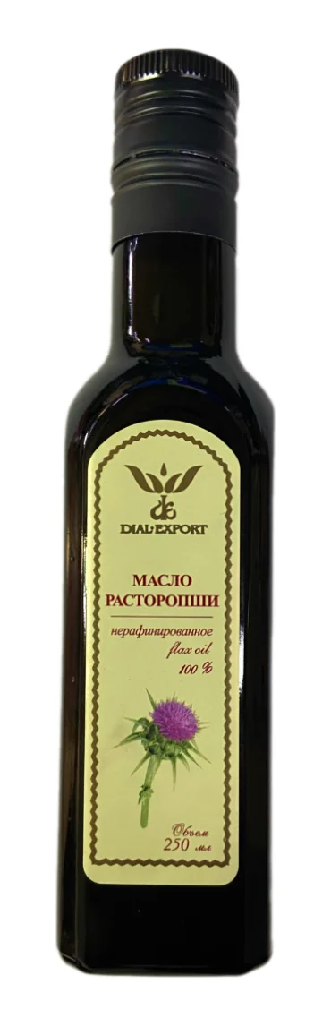 Масло расторопши, нерафинированное, холодного отжима, от жёлтого до темно-желтого цвета, запах и вкус не ярко выражен. Прекрасное дополнение к холодным блюдам, салатам и соусам. Применяется при проблемах с сердечно-сосудистой системой, при заболеваниях верхних дыхательных путей, а также при женских заболеваниях. Крайне полезно для укрепления иммунитета, при лечении простуды, как восстанавливающее средство после операций или перенесенных заболеваний и после химиотерапии.