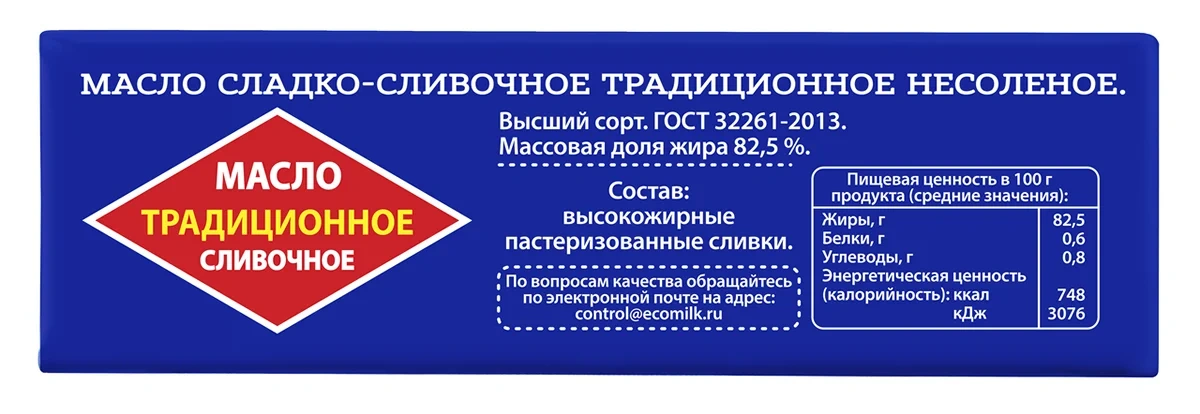 Масло сливочное Экомилк Традиционное ГОСТ 82.5%, 330г - это продукт высшего сорта, изготовленный по ...