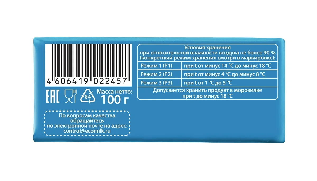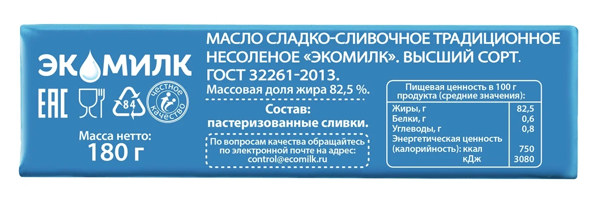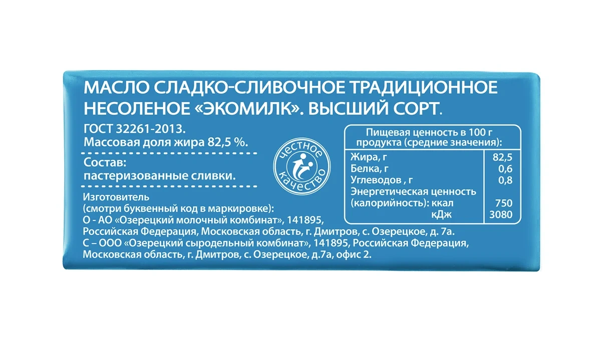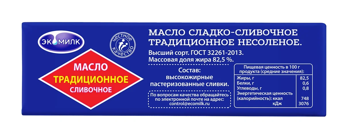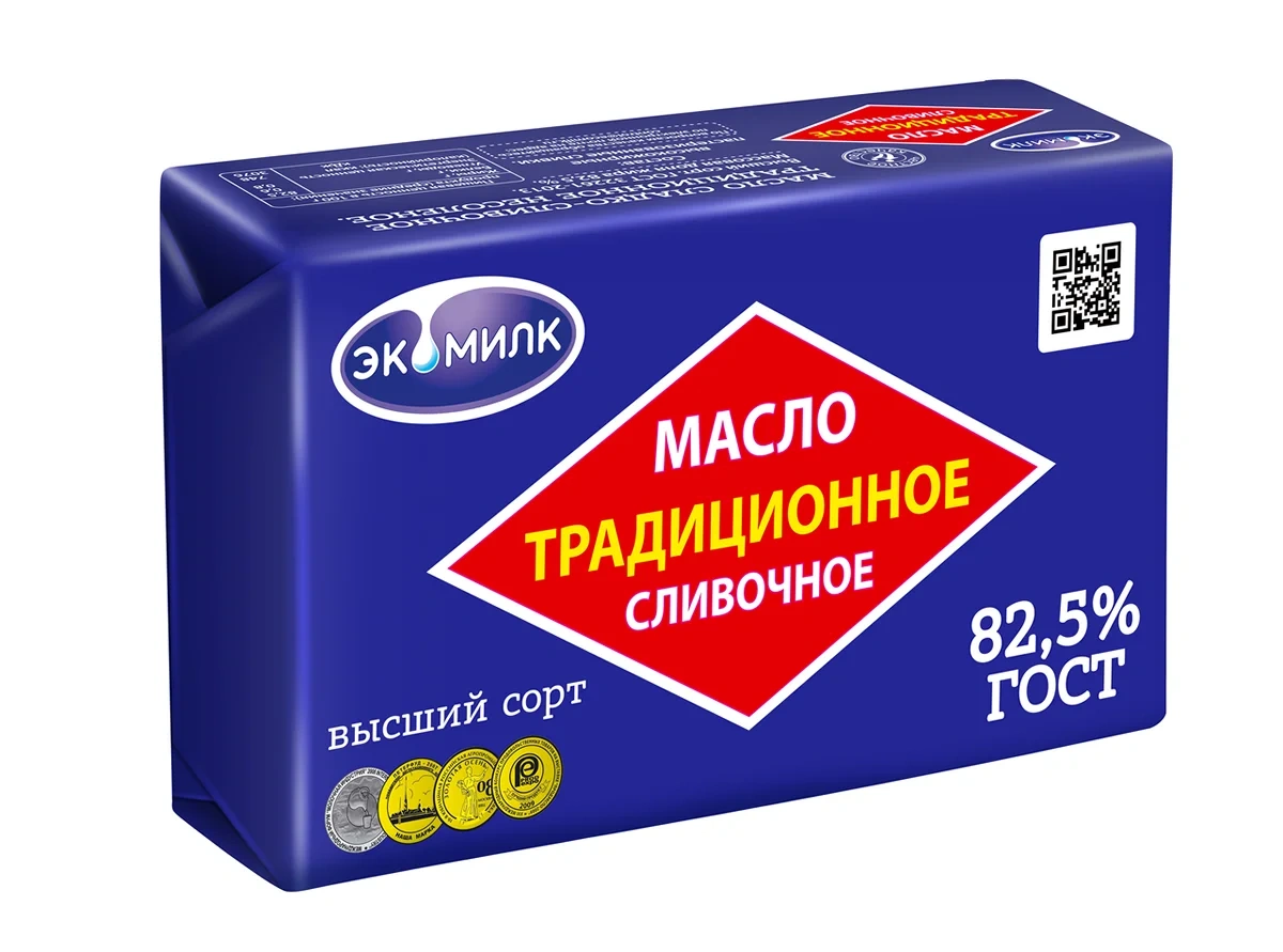 Масло сливочное Экомилк Традиционное ГОСТ 82.5%, 100г