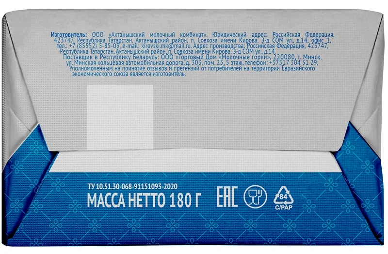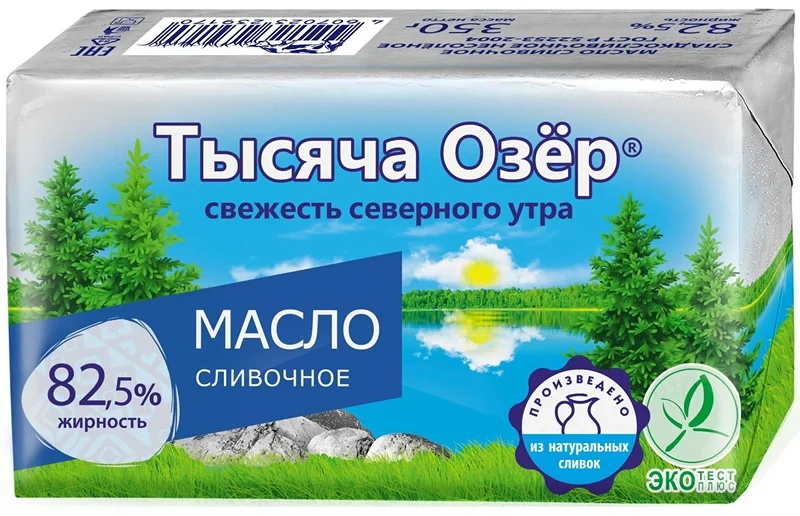 Масло сливочное Тысяча Озёр 82,5% 180 г приготовлено в лучших финских традициях по проверенной рецеп...