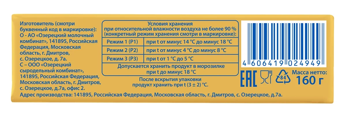 Масло сливочное Экомилк Традиционное ГОСТ 82.5%, 160г