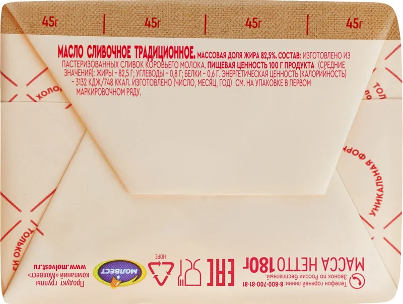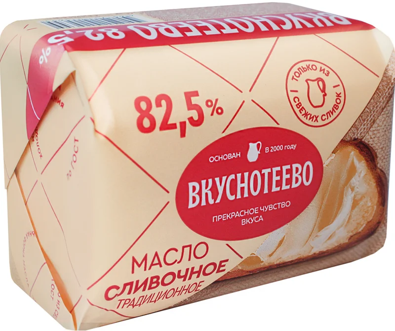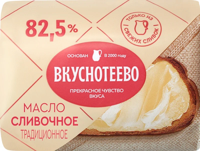 Масло сливочное Вкуснотеево Традиционное 82.5%, 180г