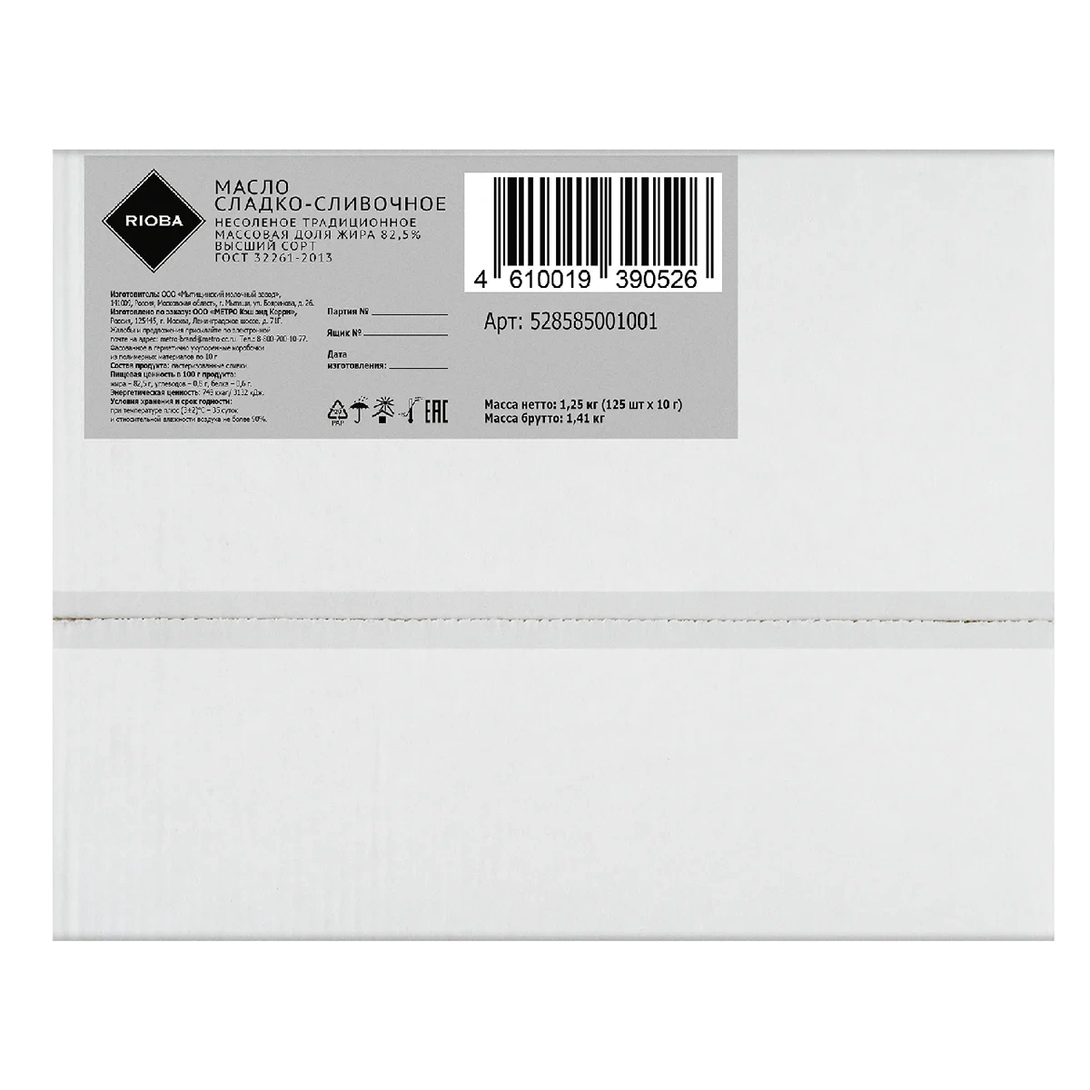 RIOBA Масло сливочное Традиционное 82.5% (10г х 125шт), 1.25кг