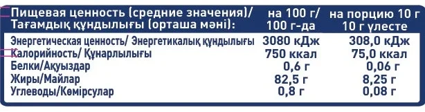 Обладает нежным вкусом. Масло используется для приготовления бутербродов, слоеного и песочного теста...