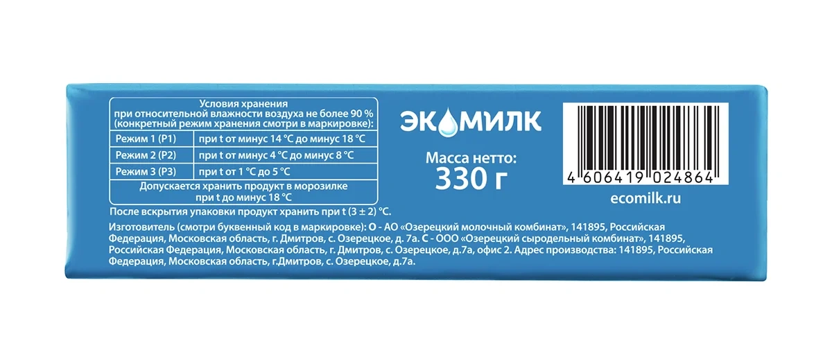 Масло сливочное Экомилк ГОСТ 82.5%, 330г - это продукт высшего сорта, изготовленный по традиционной ...