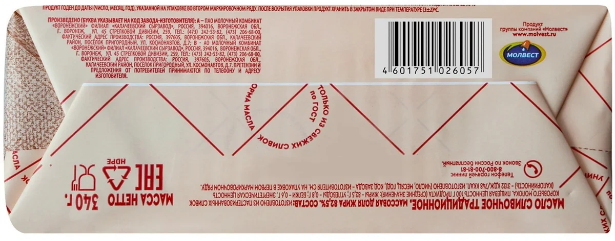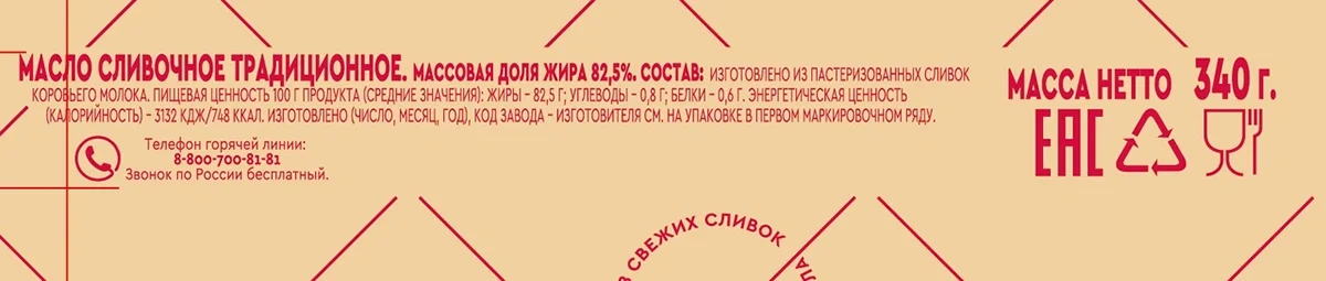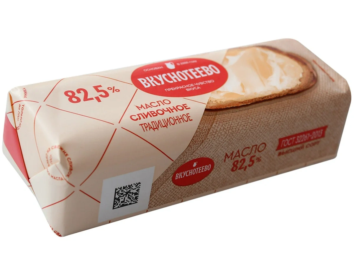 Масло сливочное Вкуснотеево Традиционное ГОСТ 82.5%, 340г