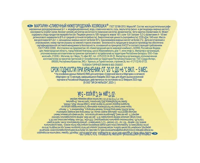 Маргарин Хозяюшка Сливочный Нижегородский ГОСТ 60%, 200г