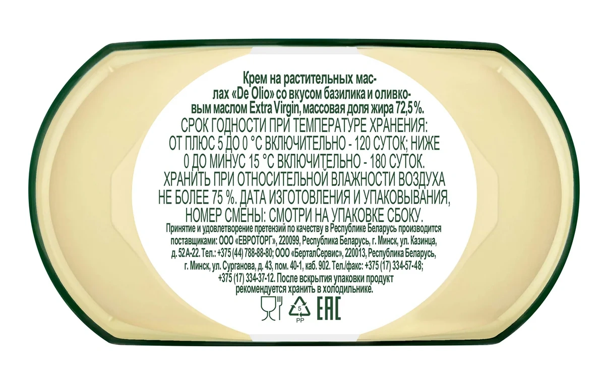 Вегамасло De Olio с базиликом и маслом оливок 72.5%, 220г
