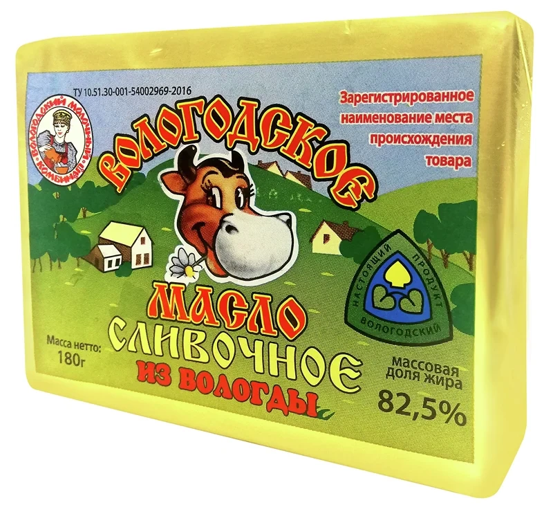 Это настоящий вологодский продукт, который производится из пастеризованных сливок высокой жирности без добавления консервантов и растительных жиров. У него плотная однородная консистенция, характерный светло-желтый цвет и выраженный сливочный вкус без посторонних запахов.
