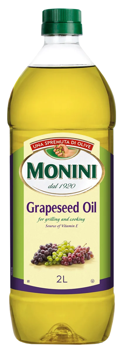Масло Monini из виноградных косточек, 2л. Рафинированный продукт хорошо подходит для жарки, а также приготовления салатов и барбекю. В составе содержатся необходимые организму кислоты и витамины, поэтому масло нередко употребляют в косметических целях: для укрепления структуры волос, ногтей и при уходе за телом. Продукт обладает комплексом целебных свойств и оказывает противовоспалительное, бактерицидное и иммуностимулирующее воздействия. Содержимое заключено в бутыль объемом 2 л, упаковка темного цвета препятствует проникновению прямых солнечных лучей.