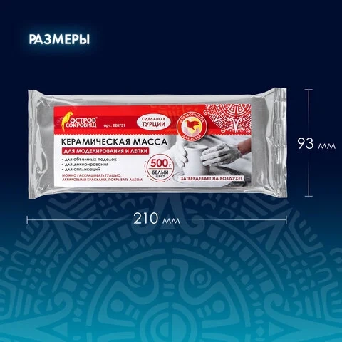 Керамическая масса для моделирования и лепки изготовлена из натуральной турецкой глины природного происхождения. Благодаря своей мягкости и пластичности, она легко лепится, раскатывается, режется, принимает любую форму и дарит удовольствие от творчества.