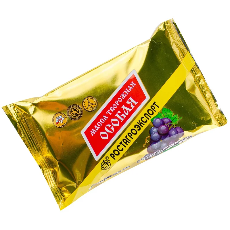 Масса творожная Ростагроэкспорт Особая с сахаром и изюмом 23%, 180г