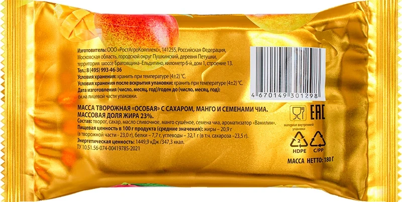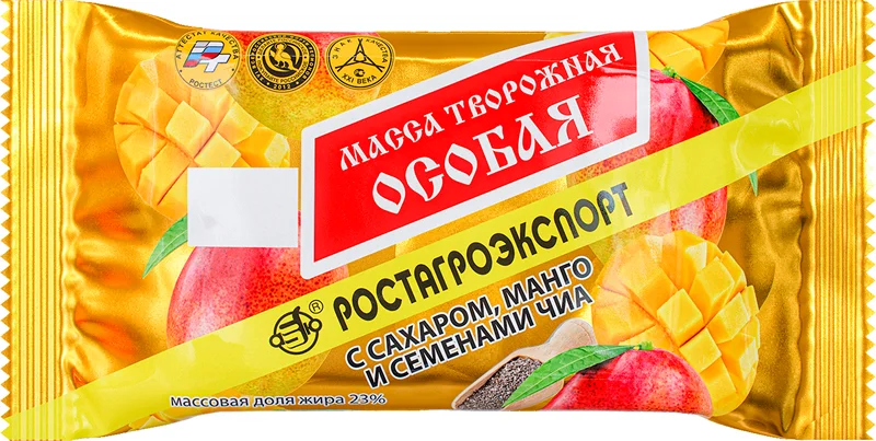 Масса творожная Ростагроэкспорт особая с сахаром, манго и семенами чиа 23%, 180г
